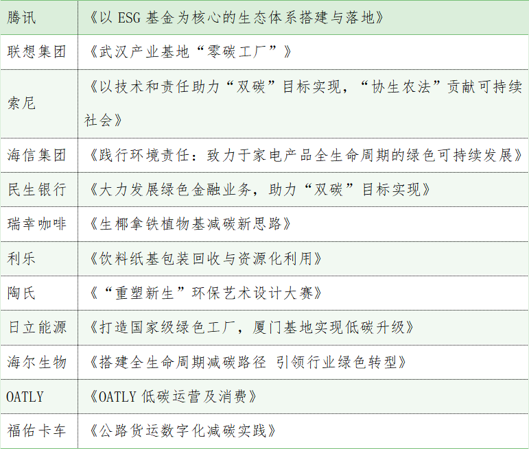 本次入围“21世纪活力·ESG环境友好案例”的企业分别是: