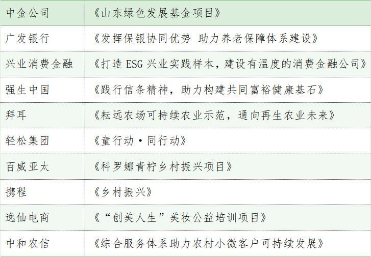 本次入围“21世纪活力·ESG社会责任案例”的分别是: