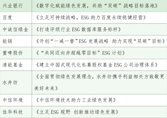 本次入围“21世纪活力·ESG绿色发展案例”的分别是:
