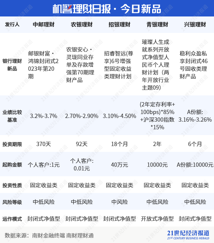 《机警理财日报》是南财理财通、21世纪经济报道旗下投资理财、财富管理特色栏目,旨在帮投资者守好“钱袋子”,并创造更高的行业价值。