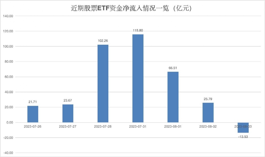 事实上,自7月26日以来,股票ETF已经连续6个交易日合计资金净流入超过355亿元,直至8月3日才出现小幅净流出的现象。