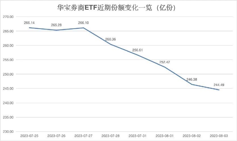 数据显示,自7月25日券商板块行情启动以来,截止8月3日,国泰证券ETF8个交易日资金净流出超过45亿元,华宝券商ETF资金净流出合计也超过27亿元。
