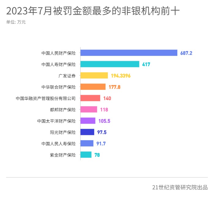 非银机构方面,中国人寿财产保险、中国人民财产保险罚单和处罚金额居前。