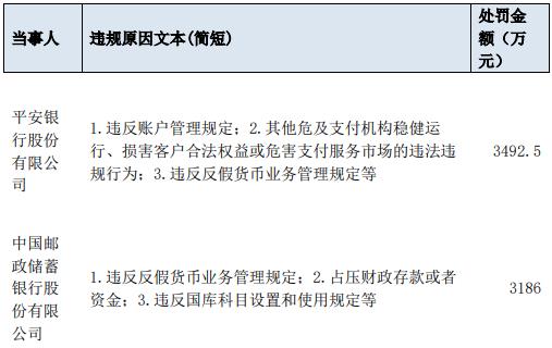 邮储银行同样涉及违反反洗钱法律法规,包括未按规定履行客户身份识别义务、未按规定保存客户身份资料和交易记录、未按规定报送大额交易报告或者可疑交易报告、与身份不明的客户进行交易等,跟平安银行收到的7月最大罚单一样,涉及违反信用信息采集、提供、查询及相关管理规定、违反反假货币业务管理规定、占压财政存款或者资金等,共涉及8项违规行为,被央行处罚3186万元。