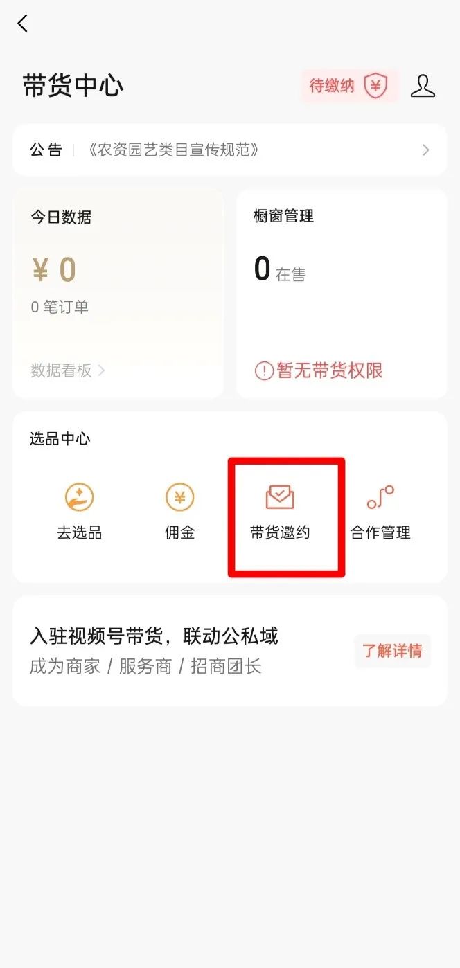 在达人侧,视频号创作者中心-带货中心-选品中心也上线了带货邀约功能,达人只要满足两个条件就能开通此功能:一是上月分销GMV大于5000元,或者短视频渠道分销月GMV大于500元;二是视频号橱窗评分大于等于4.2。
