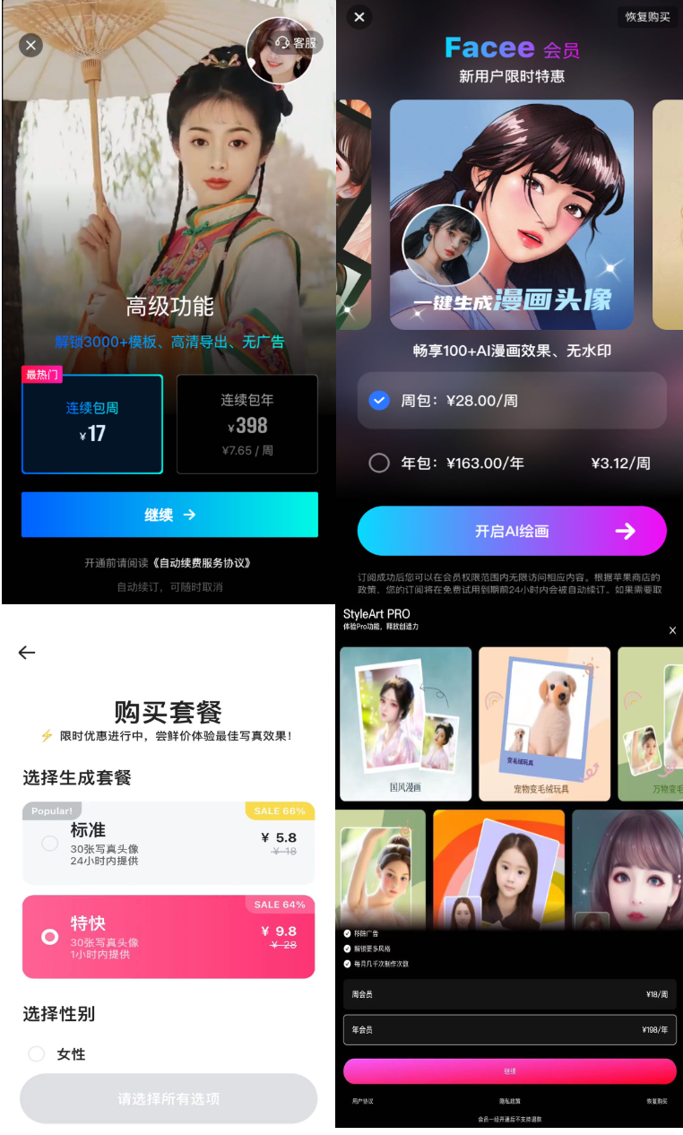 (图源:各类AI相机收费截图)