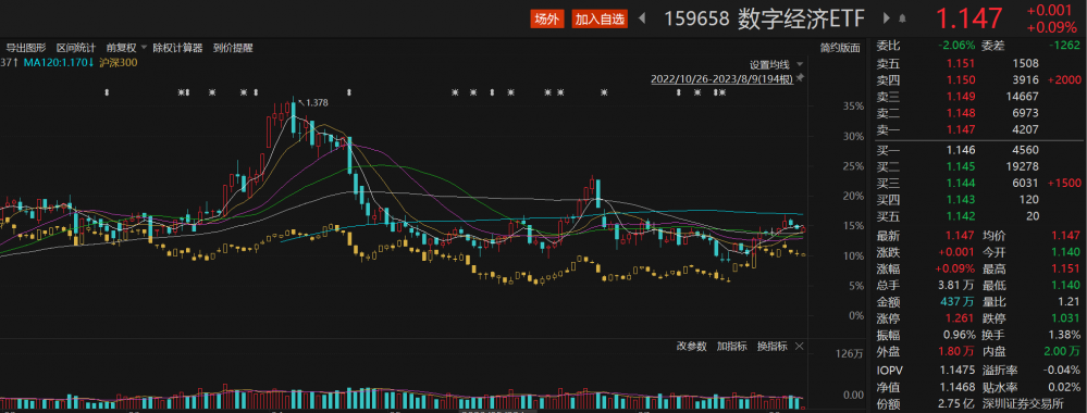 相关指数方面,中证数字经济主题指数(931582.CSI)低开高走,成分股涨跌不一。