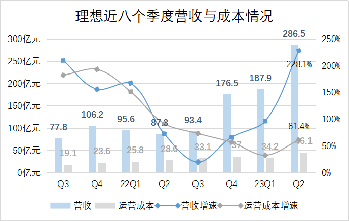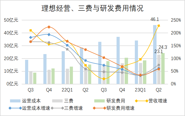 理想的运维成本,接下来将随着新车型,包括三款纯电车型上市而重新步入增长通道。事实上,在过去半年,一部分既有门店已经开始拓展门店面积,为后续车型预留空间。