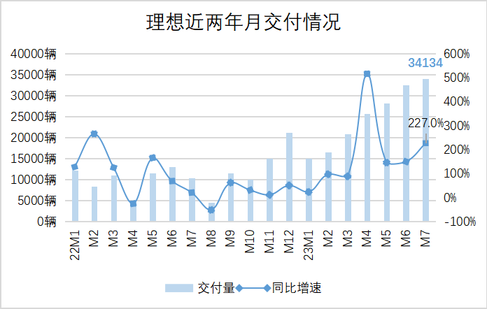 今年第二季度,理想交付量为86533辆,同比增长201.6%,在中国市场20万元以上新能源品牌销量位居第三,月市占率约为14%。
