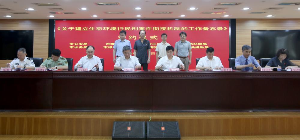 今天,上海三中院联合市公安局、市生态局、市水务局、市绿化和市容管理局、上海海警局、上海海关缉私局、市检三分院会商后共同签署《关于建立生态环境行民刑案件衔接机制工作备忘录》(以下简称《工作备忘录》)。