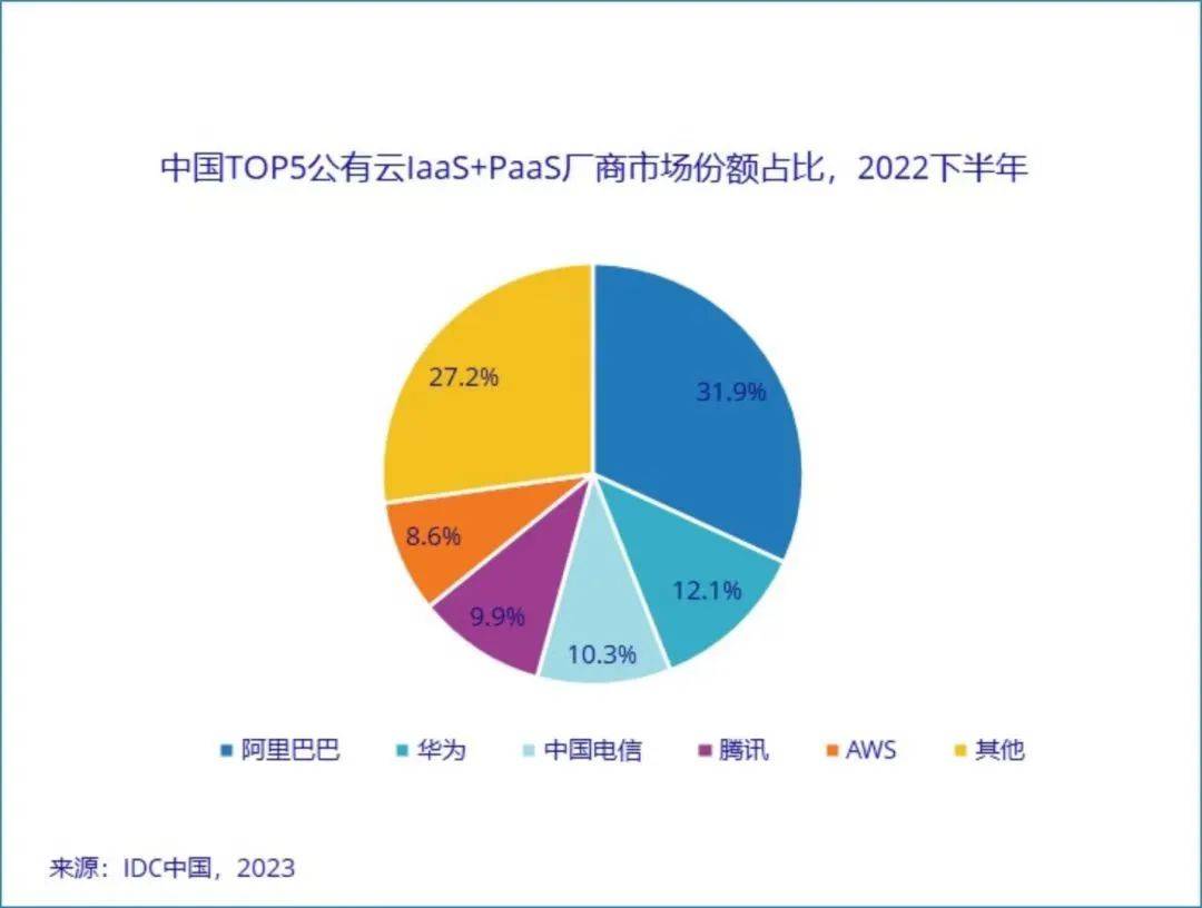 IDC发布的《中国公有云服务市场(2022下半年)跟踪》报告显示,2022年下半年中国公有云服务整体市场规模(IaaS/PaaS/SaaS)达到188.4亿美元,其中IaaS市场同比增速15.7%,PaaS市场同比增速为31.8%。