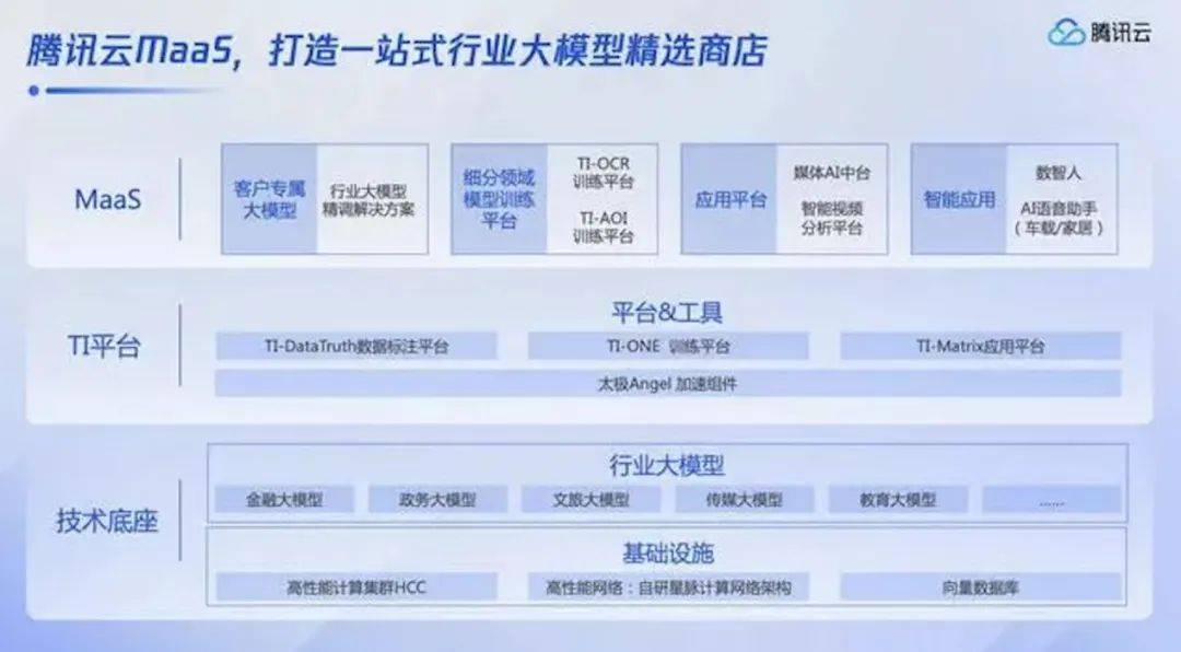 同时,腾讯在6月份首次正式公布了行业大模型研发进展和MaaS能力全景图。