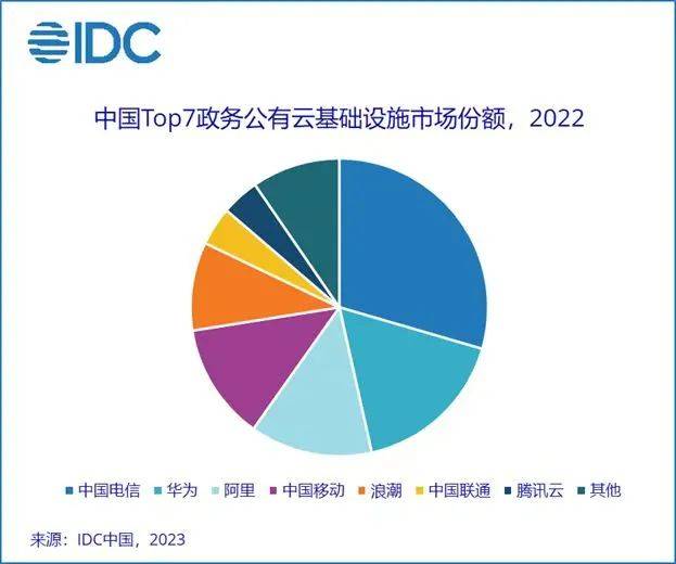 据IDC发布《中国政务云市场份额,2022》系列研究报告显示,在政务公有云市场,中国电信位居榜首、中国移动位居第四,中国联通位居第六;政务专属云市场,中国电信、中国移动、中国联通位居四、五、六位;在政务云运营与服务市场,中国移动、中国电信分居二三位。
