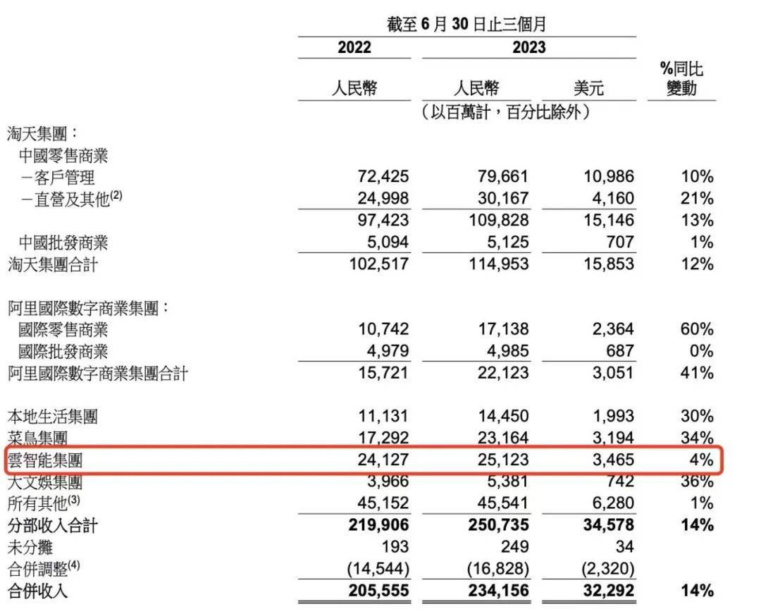 8月10日晚间,阿里巴巴集团发布2024财年第一季度财报。财报显示,云智能集团收入同比增长4%至251.23亿元。