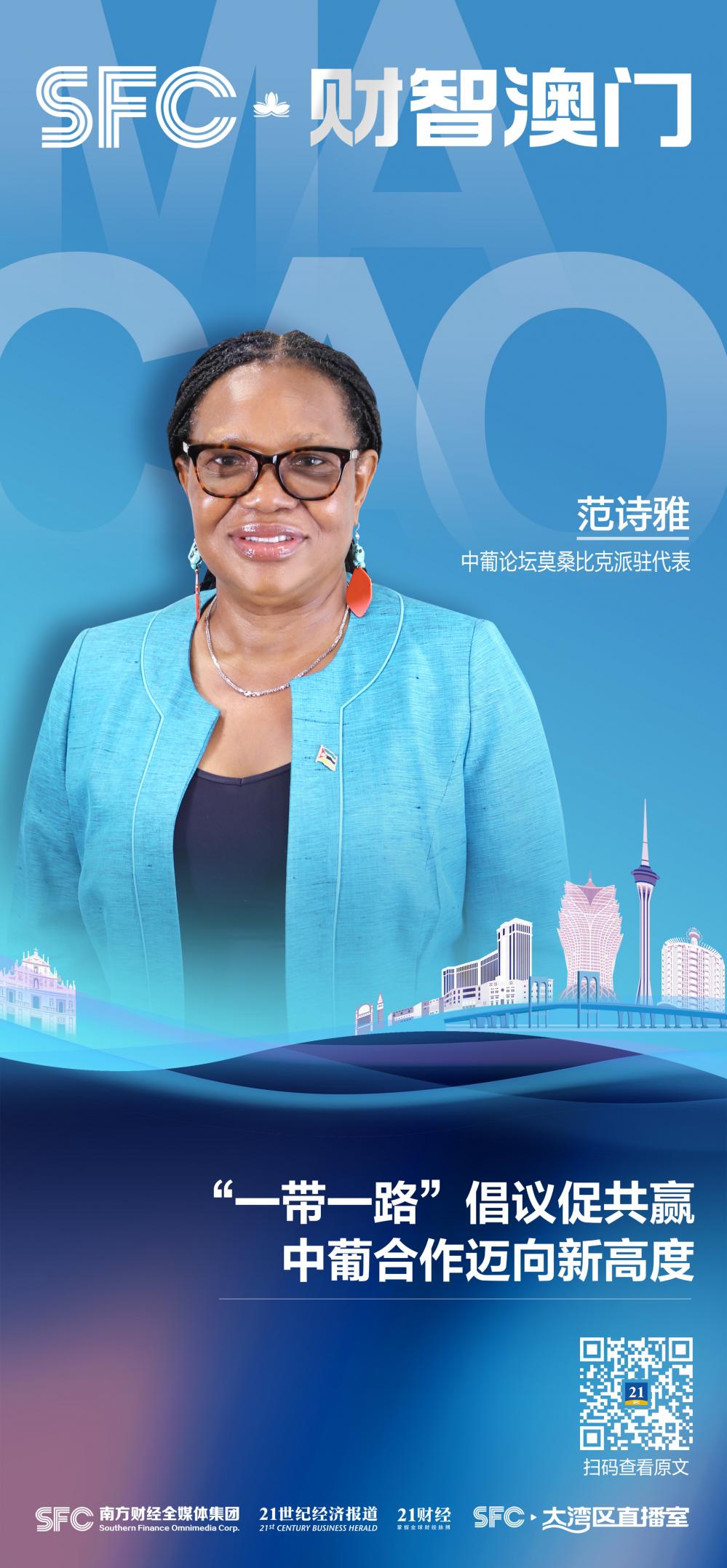 中葡论坛常设秘书处莫桑比克派驻代表范诗雅在接受南方财经全媒体记者专访时表示,“一带一路”倡议有利于促进两国在基础设施建设、能源、农业、教育与人文交流等领域的合作,同时为中非经济投资提供新机遇。