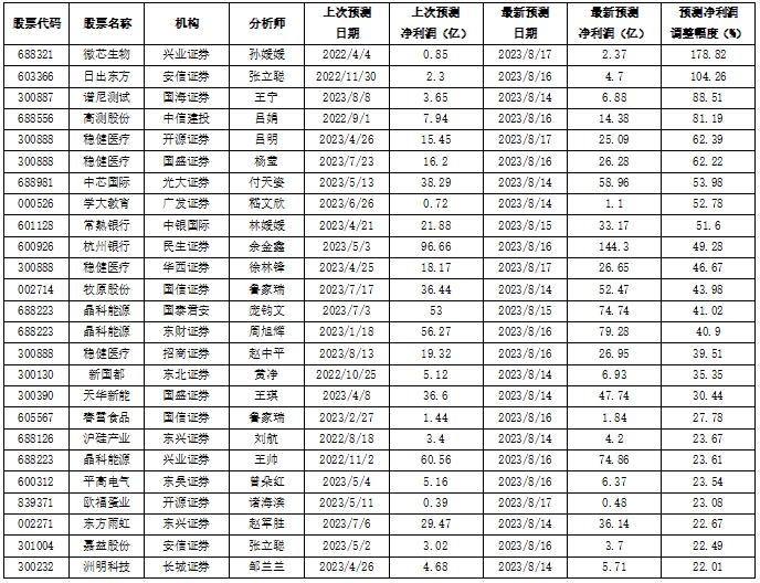 获上调盈利预测值幅度超20%的公司