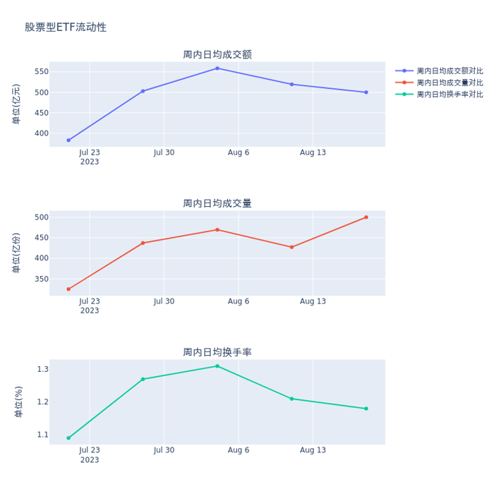 流动性方面,上周股票型ETF市场日均成交额减少3.7%,日均成交量增加17.1%,换手率减少0.03%。