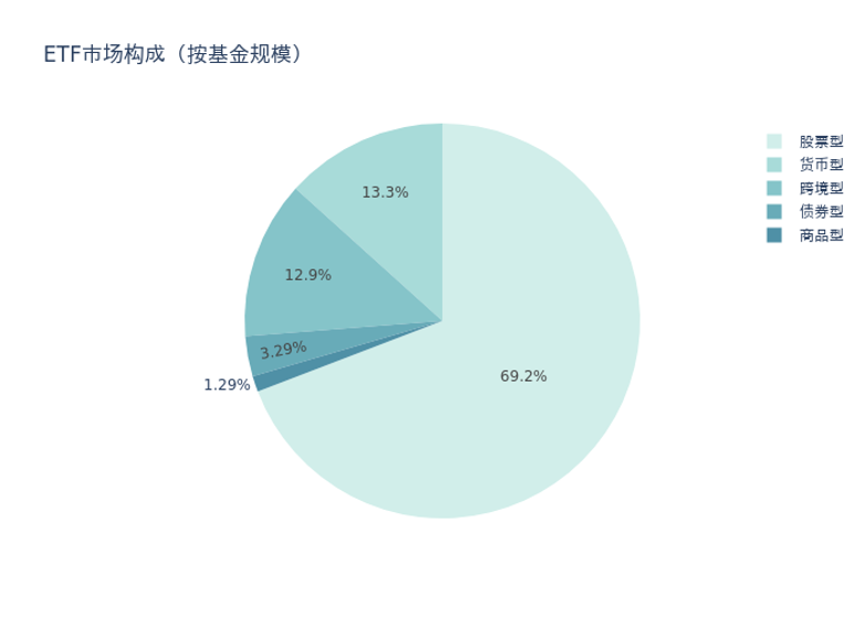 基金规模方面,上周ETF市场总规模达到19687.57亿元,较前一周增加38.0亿元。其中,股票型ETF为13617.27亿元,债券型ETF为648.65亿元,货币型ETF为2621.74亿元,商品型ETF为254.62亿元,跨境型ETF为2545.29亿元。