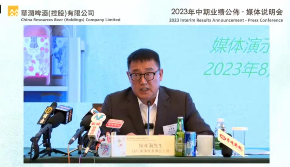华润啤酒董事会主席侯孝海在中期业绩媒体说明会上 文静/截屏