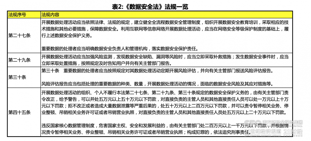梳理相关案例发现,违法的法规主要是数据安全法的第二十七条、第二十九条以及第四十五条(详见表2)。