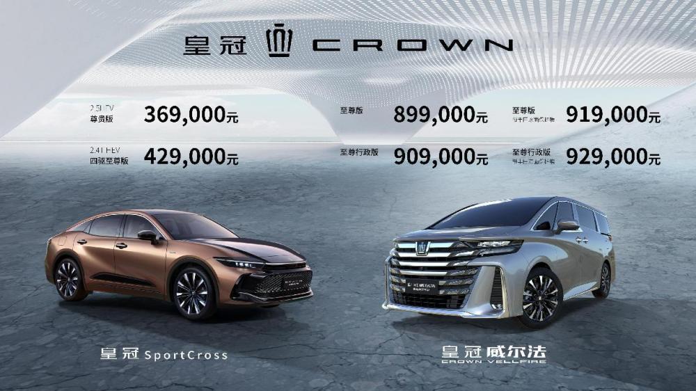 今年6月,一汽丰田皇冠 SportCross&新款皇冠威尔法双车联袂上市,其中皇冠 SportCross推出 2.5HEV尊贵版、2.4T HEV四驱至尊版两款车型,售价分别为36.9万元及42.9万元;新款皇冠威尔法则推出至尊版、至尊行政版两款车型,价格区间为89.9万元-92.9万元。