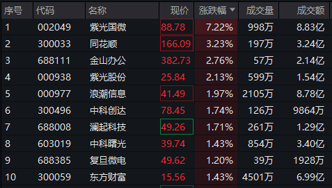 今日(8月24日),受AI概念活跃影响,数字经济板块早盘高开,截至发稿,相关指数中,中证数字经济主题指数(931582.CSI)高开高走,成分股中,计算机、半导体相关个股上涨。其中,紫光国微涨超7%,紫光股份、浪潮信息、复旦微电、澜起科技等股跟涨。