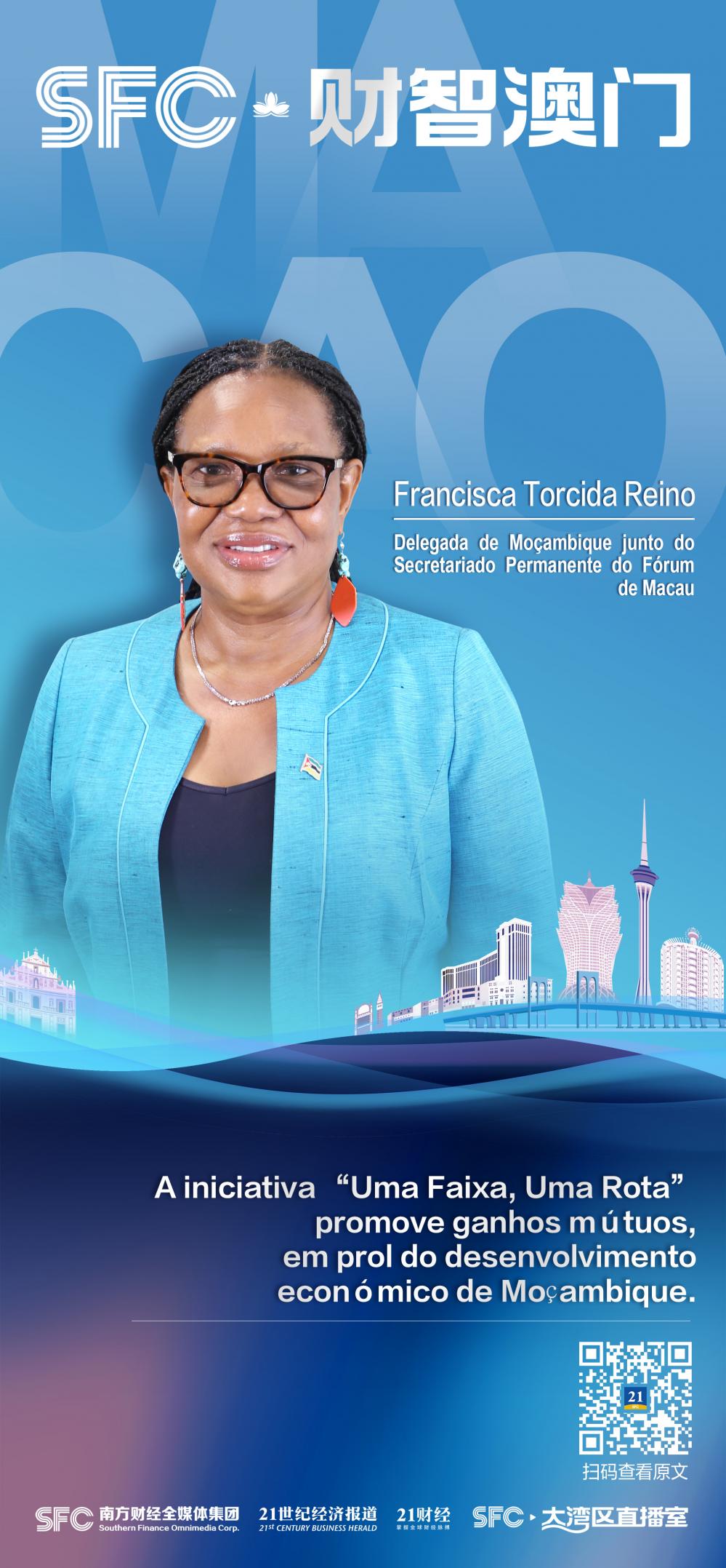 Representative of Mozambique of Permanent Secretariat of the Forum Macao, Francisca Torcida Reino, expressed in an exclusive interview with SFC journalists that the "Belt and Road" initiative is conducive to enhancing collaboration between China and Mozambique in areas such as infrastructure development, energy, agriculture, education, and cultural exchange, while also providing fresh opportunities for Sino-African economic investment.