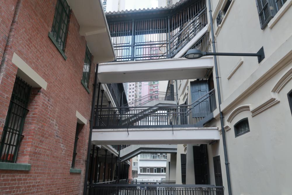 楼宇交错之间,各大公司的霓虹招牌瞩目,裸露的空调外机为“港风街景”注满了生活气息。行至尽头,维多利亚式的建筑“大馆”赫然眼前。旧中区警署、前中央裁判司署以及域多利监狱旧址被修缮,摇身变成艺术展廊、餐吧、酒吧,隐藏于这座建筑群间,待游客发现。