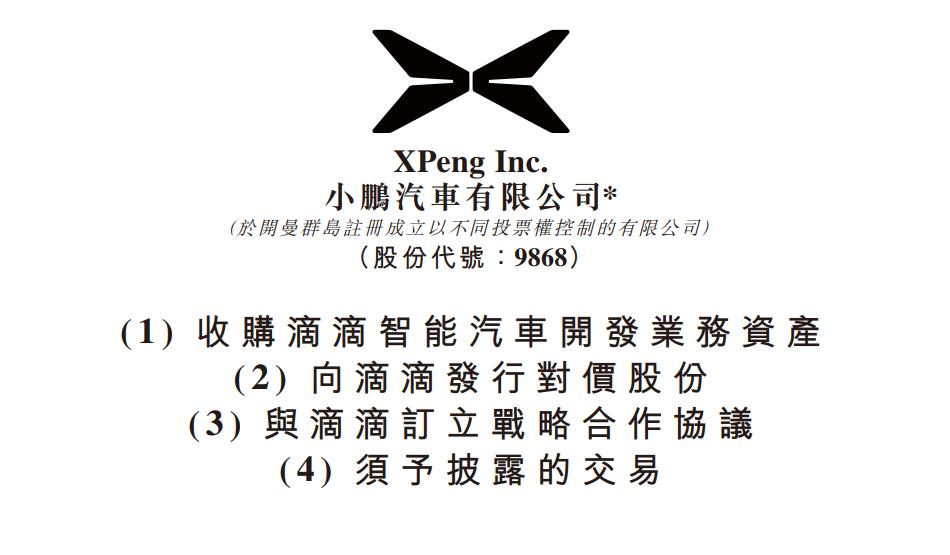8月28日,小鹏汽车在港交所发布公告,为了与滴滴全球股份有限公司就滴滴集团目前开展的智能汽车开发业务达成战略合作,公司于8月27日与滴滴及标的控股公司签订股份购买协议,有条件同意收购滴滴旗下智能电动汽车项目相关资产和研发能力,收购的最高对价约为58.35亿港元。