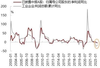 ▍图2:工业企业利润连续5个月降幅收窄,预计上市公司盈利正在筑底