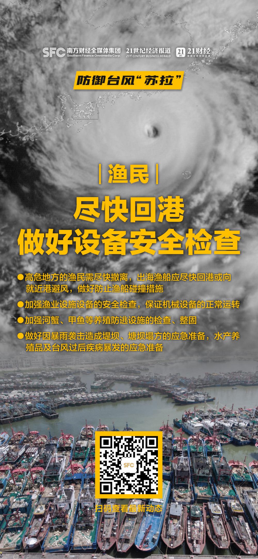 广东省海洋综合执法总队发布消息称,为全力防御台风“苏拉”,截至8月31日18时,广东省应回港渔船27214艘已全部回港避风,海洋牧场、渔排养殖人员12322人全部上岸避险。