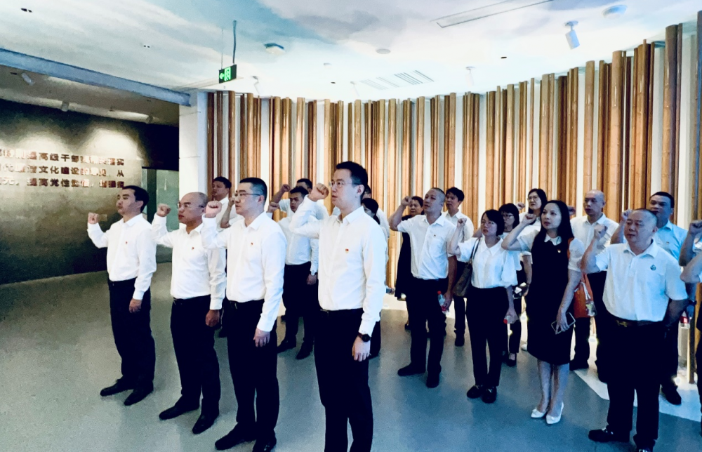 随后,来到宣誓大厅,平安财险海南分公司党委书记、总经理王然同志带领全体党员干部在鲜红的党旗下重温入党誓词,重忆入党初心。