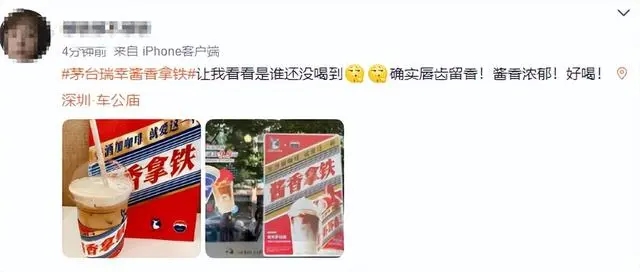 9月4日,贵州茅台与瑞幸咖啡推出的联名咖啡“茅台瑞幸酱香拿铁”正式上架开卖。相关话题#瑞幸回应喝茅台联名咖啡能否开车##酱香拿铁#迅速霸榜微博热搜。