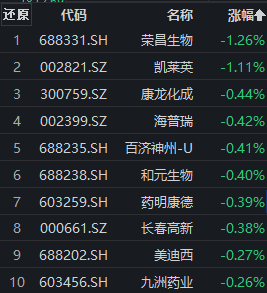 医药股早盘涨跌不一,相关指数中,中证创新药产业指数(931152)小幅上涨。截至发稿,上涨成分股中,科伦药业、人福医药、海翔药业、特宝生物、微芯生物、步长制药涨超1%;下跌成分股中,荣昌生物、凯莱英跌超1%。