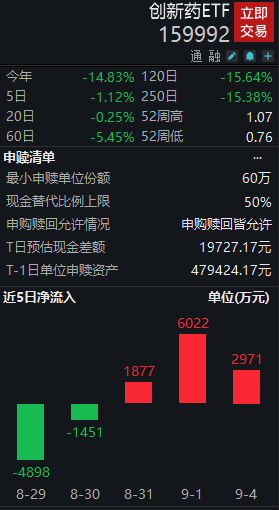 值得注意的是,创新药ETF(159992)近3个交易日均获资金净流入,累计净流入额超1亿元。