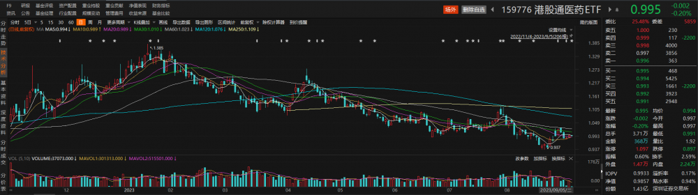 跟踪该指数的港股通医药ETF(159776)小幅下跌,盘中持续溢价。截至发稿,该ETF跌幅为0.20%,溢折率为0.17%。