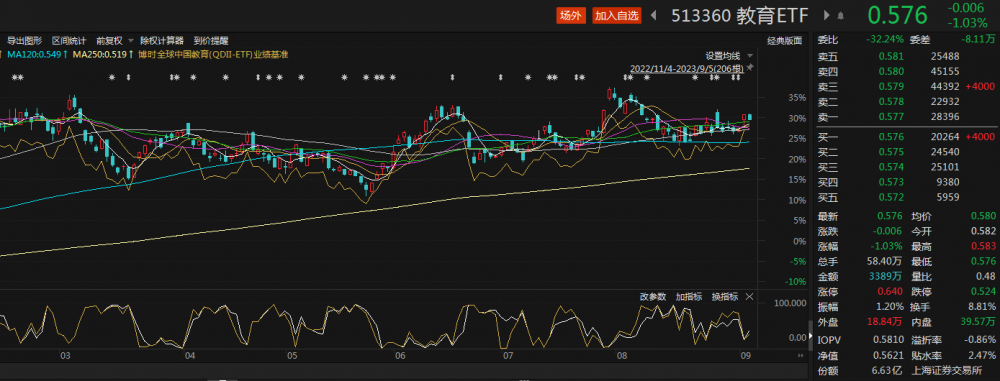 跟踪中证全球中国教育主题指数的博时教育ETF(513360)盘中交投活跃,下跌1.03%,换手率超8%,成交额超3300万元。