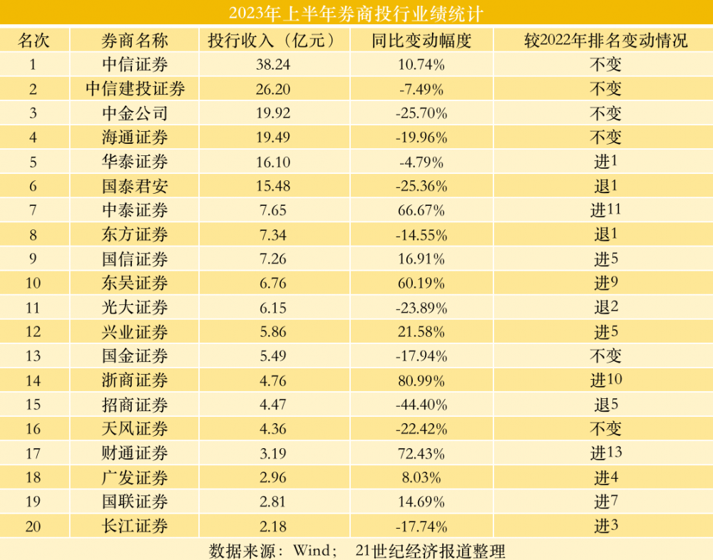 半年收入5亿元,在今年投行中可以排到第14名,放在2022年和2021年,则只能排到第17名和第19名。
