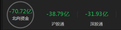 截至A股收盘,北向资金合计净卖出70.72亿元,其中沪股通净卖出38.79亿元,深股通净卖出31.93亿元。