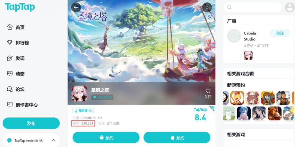 此前在国内的删档测试中,《圣境之塔》引发了用户的热烈反响,在国内全平台累计预约人数超过200万,其中以95后、00后玩家的呼声最高;TapTap 评分8.4,预约人数超过20万人,备受期待。凭借良好的产品数据及口碑,《圣境之塔》在国内受到了华为、小米等主流渠道的推荐和扶持。