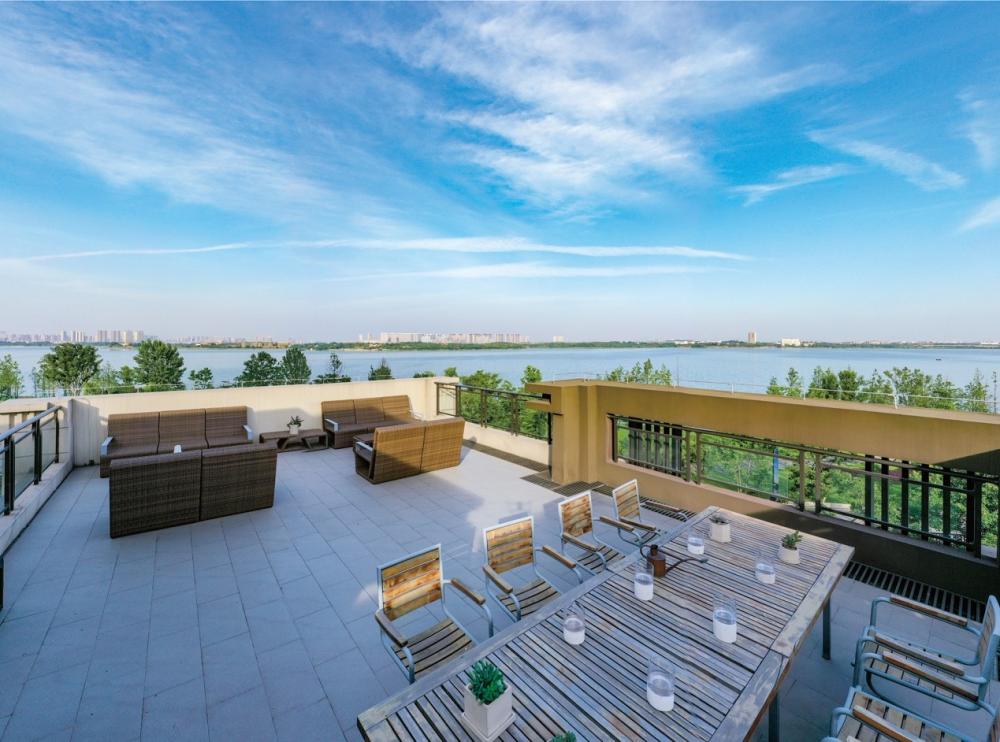同时,打造的多层水系园林与汤逊湖外的水景交相辉映,形成独特的水系园林。并根据项目特性精心设计,让业主除了可以在自家客厅、阳台远眺湖景,尽享日出、日落的波光外,还能漫步约 1.2 公里湖岸线及约 5 万方精心打造的独家滨湖景观带。