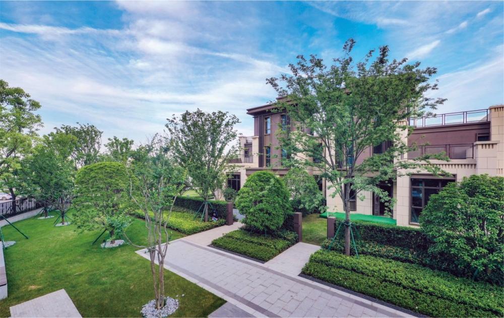 如今,沿着步道向小区深处走,一路的景色颇得中式园林精髓,曲折步道,一步一景,每一个转弯,都能体会柳暗花明、湖光水色的趣味。