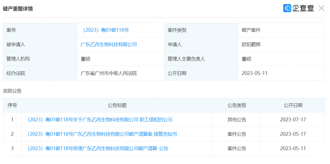 此前,上海晏卓生物科技、广东乙丙生物科技等已宣告破产。其中,后者还是丁家宜的“御用”代工厂。