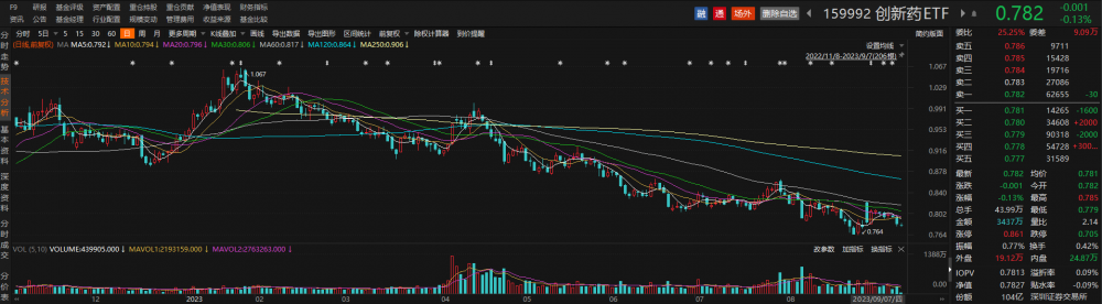 跟踪中证创新药产业指数的ETF中规模最大的创新药ETF(159992)早盘窄幅震荡,盘中现溢价交易。截至发稿,该ETF下跌0.13%,溢折率为0.09%。