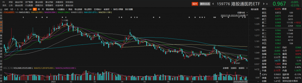 跟踪该指数的港股通医药ETF(159776)早盘下跌。截至发稿,该ETF跌幅为0.51%,换手率达2.40%。
