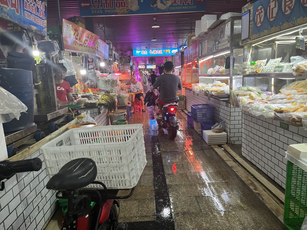 南方财经全媒体记者实地走访东门步行街、晒布地铁站、湖贝地铁站等地发现,路面基本已无积水,周围肉菜市场物资充足,交通顺畅。