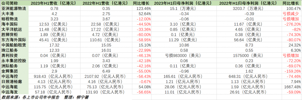虽然整体货物吞吐量上涨,但部分从事国际航运业务的港口物流公司还未迎来明显的业绩回暖。截至8月底,17家港股港口上市公司公布年中报告。南方财经全媒体记者梳理发现,13家企业上半年营收同比下降,12家企业上半年归母净利润同比下降,反映出行业景气度有所下滑。