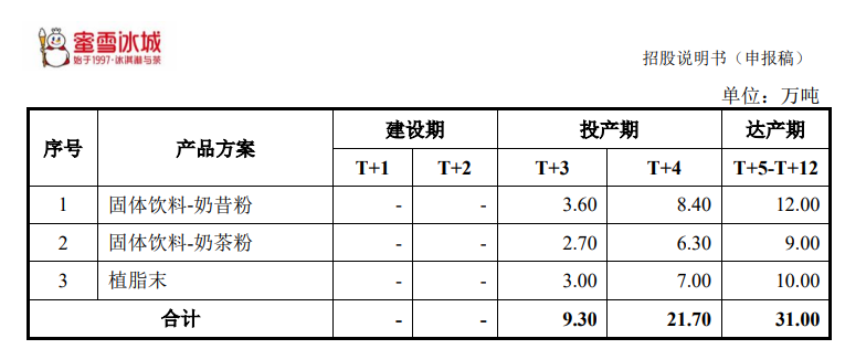 除采购外,蜜雪冰城还计划用上市募集的资金自建植脂末生产线。在该公司披露的招股书中,其中一个募投项目是大咖国际产业园二期项目,即围绕自主生产所需原材料植脂末的产线建设,以及奶昔粉、奶茶粉产品产线的工艺升级及扩能开展相关建设。按照预计,达产期植脂末产能将达到10万吨/年。