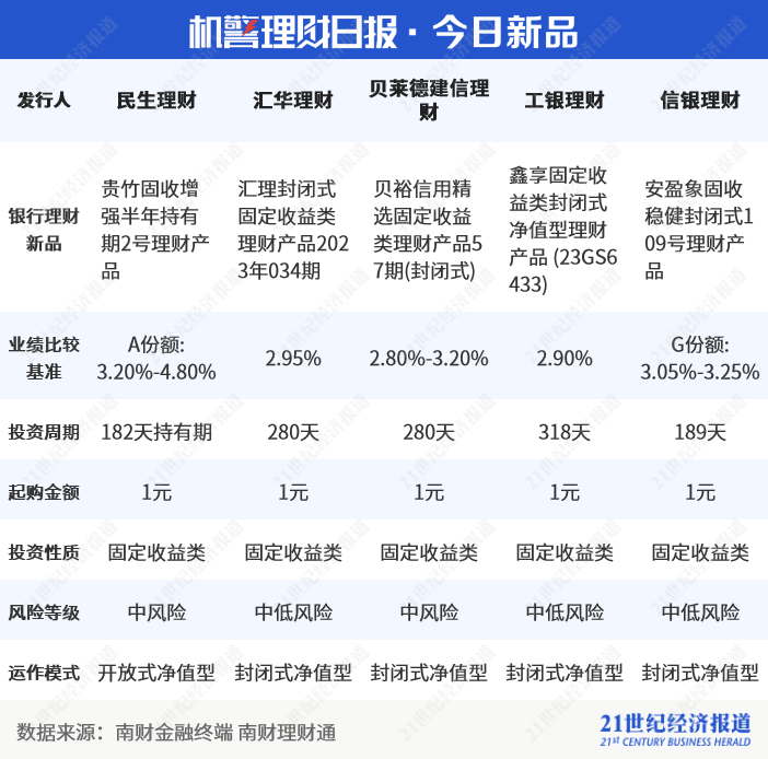 《机警理财日报》是南财理财通、21世纪经济报道旗下投资理财、财富管理特色栏目,旨在帮投资者守好“钱袋子”,并创造更高的行业价值。