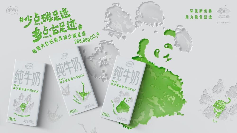 今年8月15日首个全国生态日当天,伊利推出了全国首款碳足迹认证的环保豆奶和减塑标签的燕麦奶,把碳标签印到了包装上,让消费者明明白白减碳,给亚运充“植”一抹绿。为助力“绿色亚运”,伊利更携手大熊猫、丹顶鹤和东北虎这三大“国宝设计师”进行包装共创,推出减碳环保包装“动物足迹瓶”,让“碳足迹”转化为消费者更熟悉的“动物足迹”,潜移默化地向消费者传递伊利的环保初心和低碳措施。